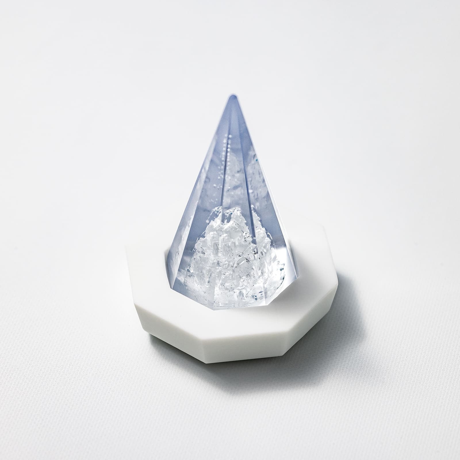 「溶けない盛り塩」は、純粋な塩を透明な樹脂の中に閉じ込めることで、