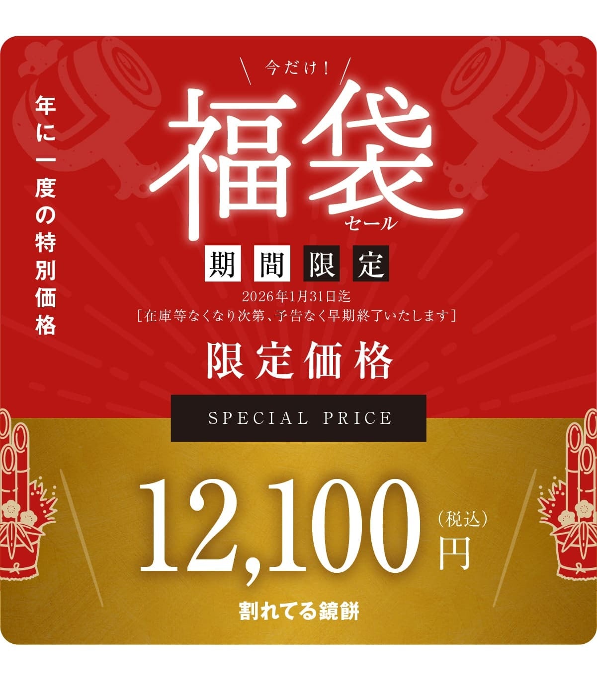 【 限定 福袋 】縁起良し!割れてる鏡餅 [ 純金塗りミカン ]