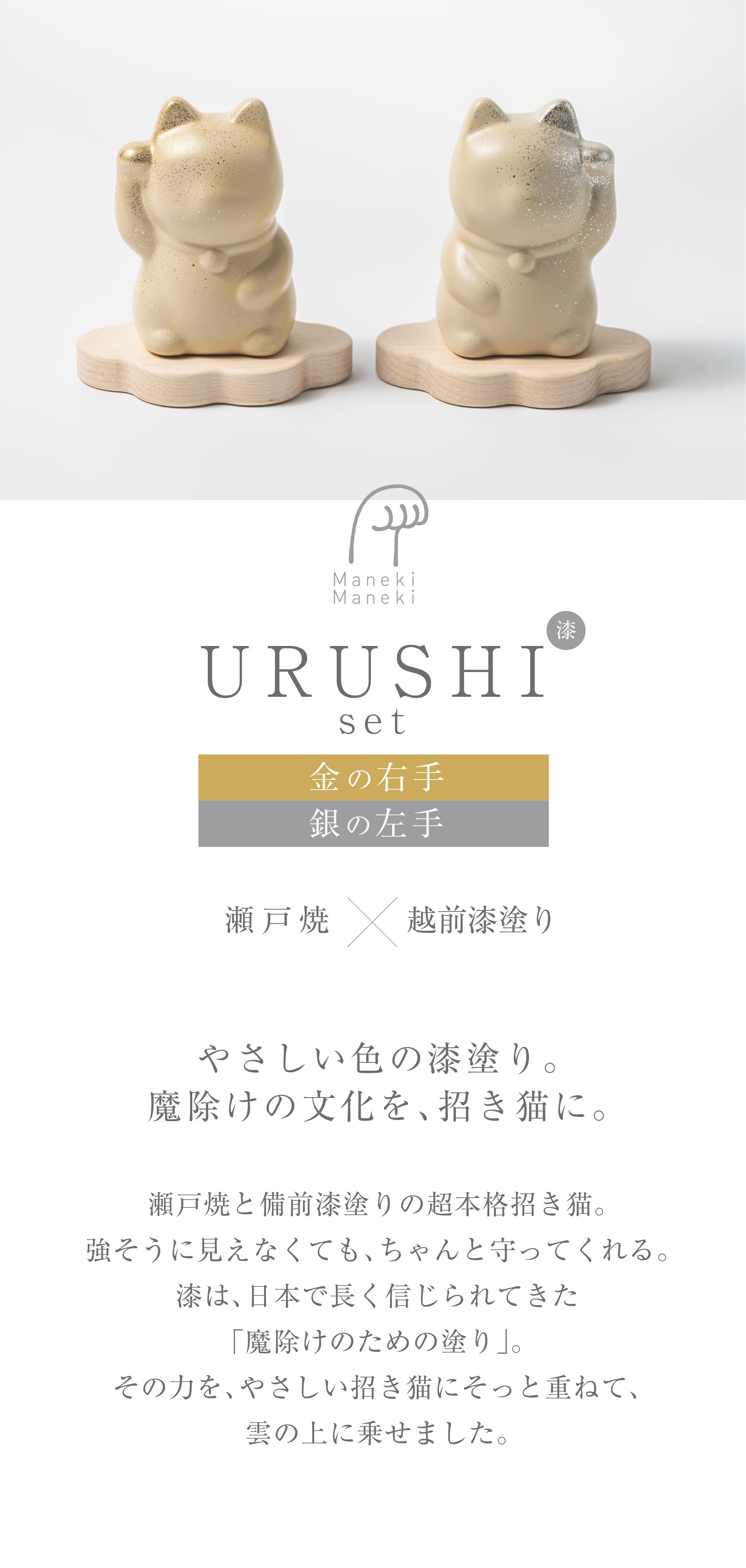 【 maneki maneki 】招き猫 漆 URUSHI 【 ペア 】[ 金の右手 & 銀の左手 ] まねき まねき