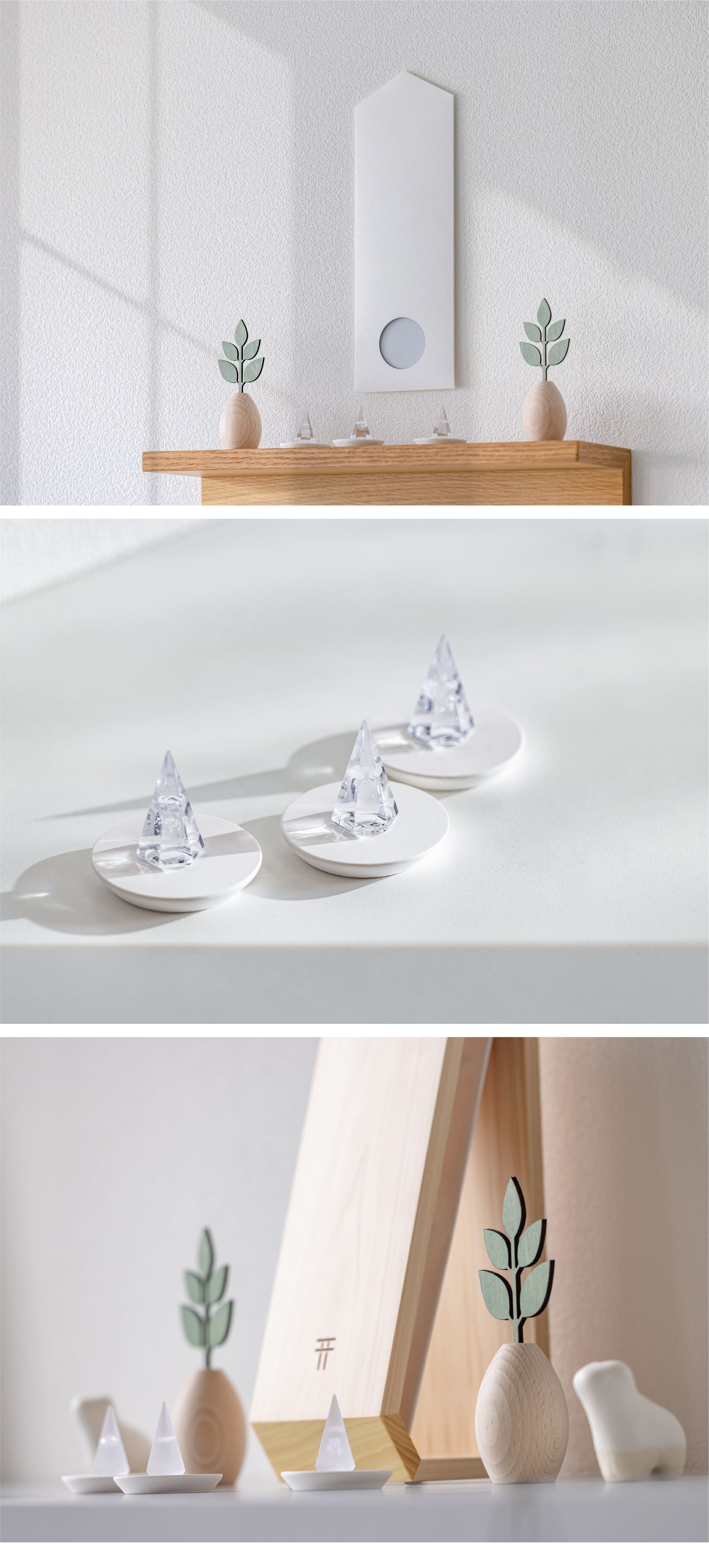 グッドデザイン賞受賞「貼る神棚」をはじめ、伊勢神宮杉など希少な木で作る「置ける神棚」「光のお供え」「願い小だるま」など、自分らしく飾れる神棚に。かみさまとおうち。