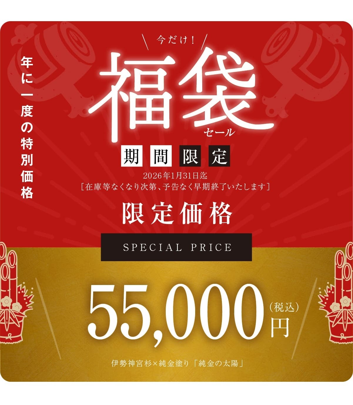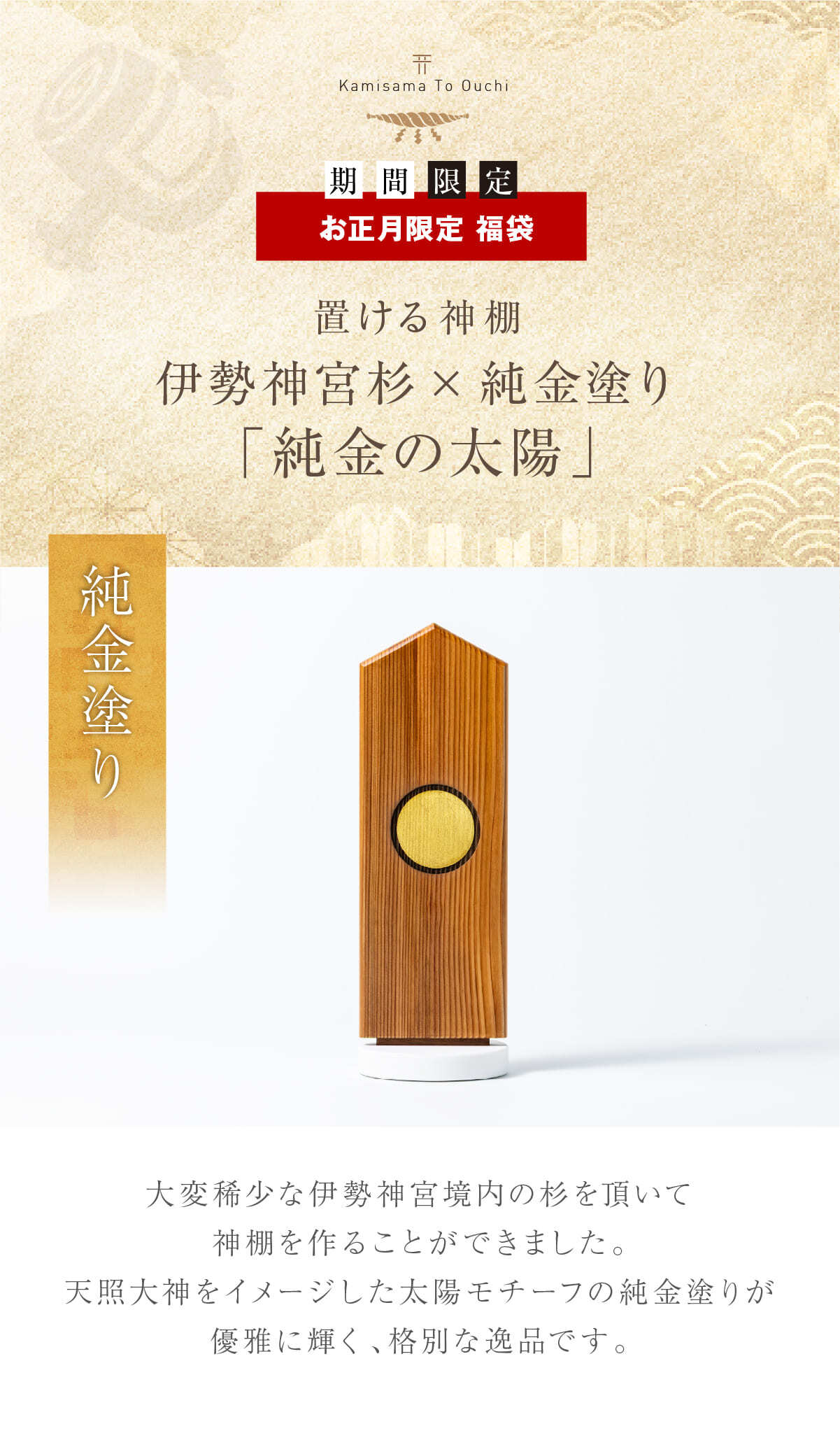 【 限定 福袋 】純金塗り! 置ける神棚 伊勢神宮杉 [ 純金の太陽 ]