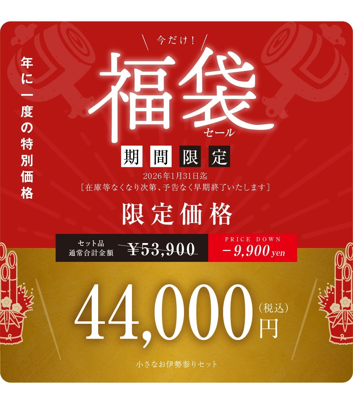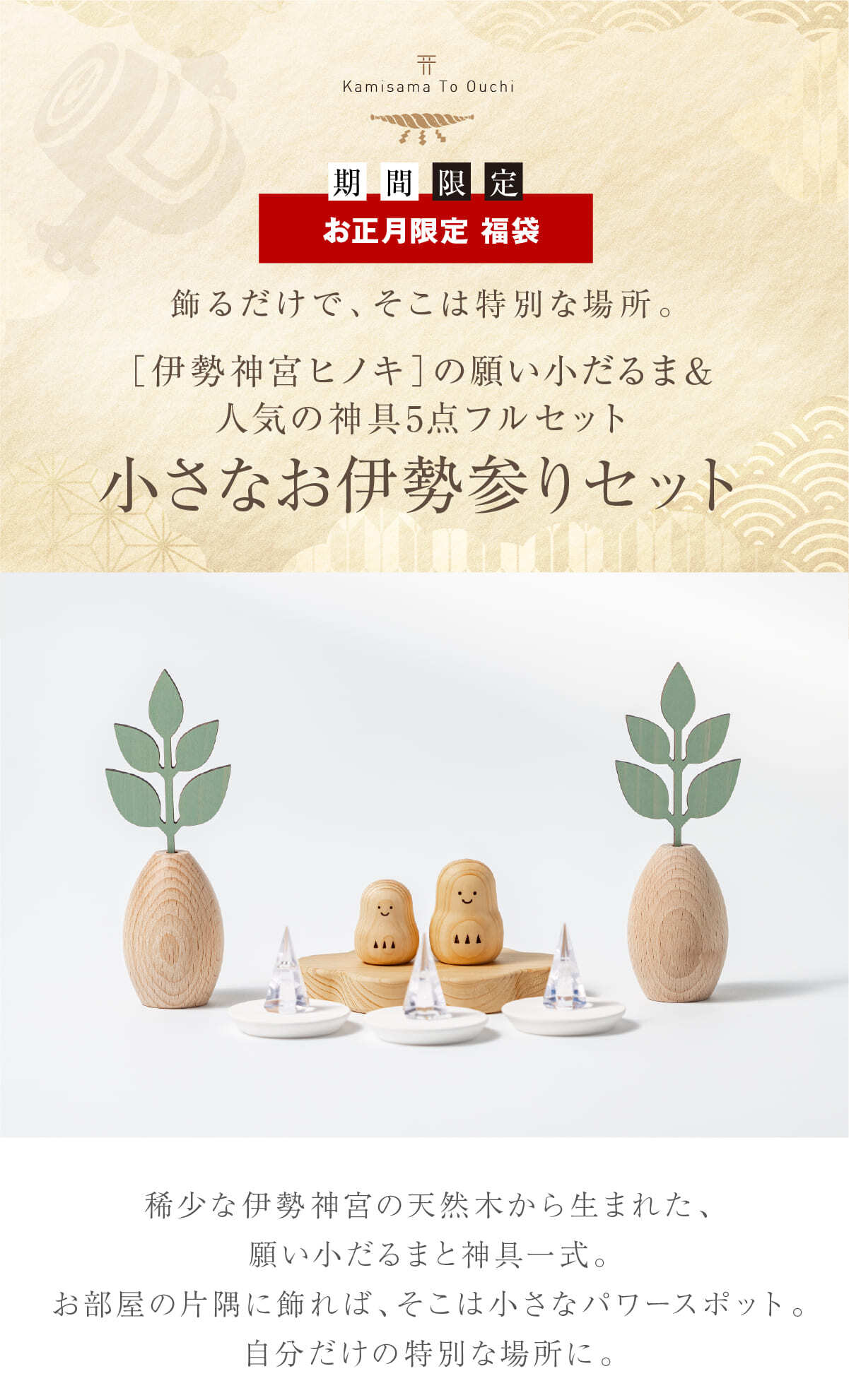 【 限定 福袋 】ちいさなお伊勢参りセット | 願い小だるま[伊勢神宮ヒノキ]& 天然木の榊 & かみさまの雲[ 伊勢神宮ヒノキ ]& 光のお供え